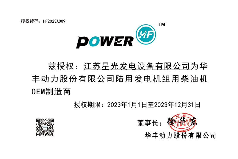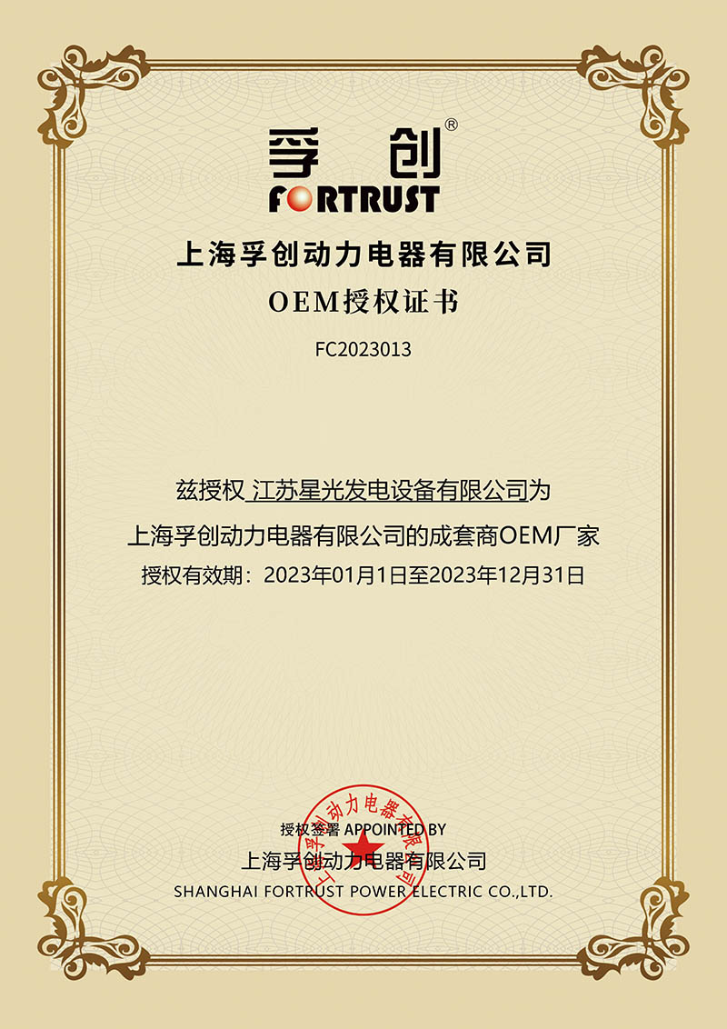 上海孚創(chuàng)動(dòng)力電氣有限公司OEM授權(quán)證書