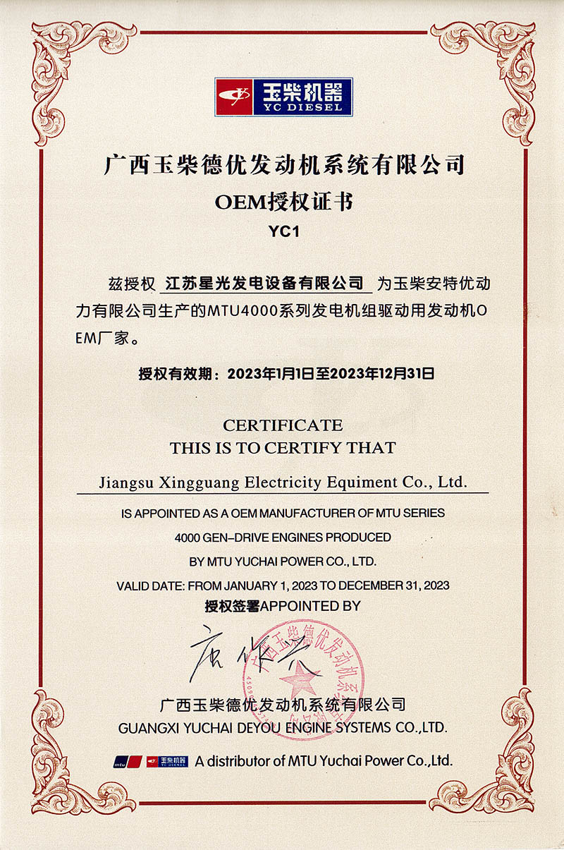 2023年玉柴安特優(yōu)MTU授權(quán)書